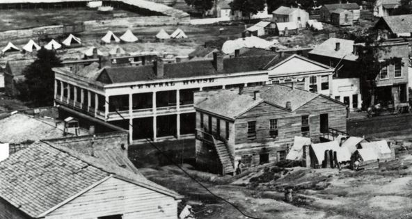 The girls were worn out. Some of them had walked ten or twelve miles, and none less than six. They were exhausted and soon lay down in rows on the floor. On arriving at Chattanooga, they were marched up Market Street to the corner of Seventh to the office of the provost marshal, named Brayton. General Steadman’s adjutant, S. B. Moe, sent for the General, who came in and looked at the girls. After he heard Captain Walker’s tale, he gave him a severe reprimand and directed his adjutant to take them to the Central House, have the best meal possible prepared for them, then take them back to the old boat and have Captain Wilds, who was in charge, carry them back to their starting place. After being refreshed by this meal, they went with Adjutant Moe to the boat, on which they had the same accommodations as before—no beds, no chairs, no guards. While waiting for the boat to start they heard that General Lee had surrendered. This was sad news to them, as many had relatives with Lee and Johnston.