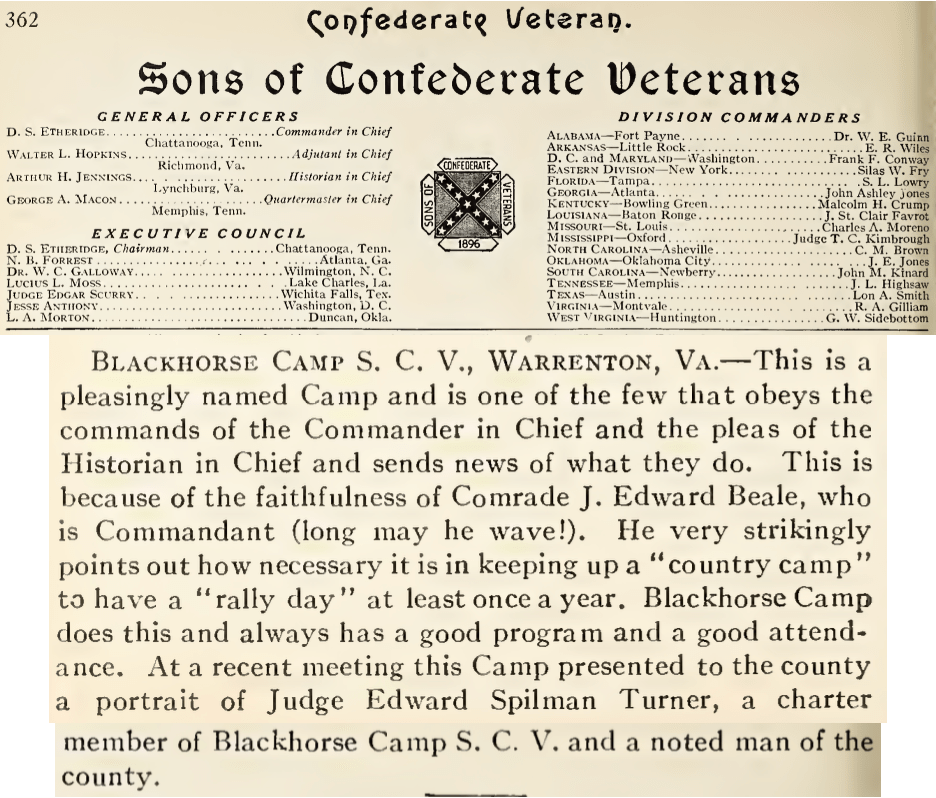 Black Horse 22-24 19Nov 202419 Nov 2024Add a comment Blackhorse Camp S.C.V. (1924). Confederate Veteran, XXXII(9), 362. Share this:TweetLike Loading... Related